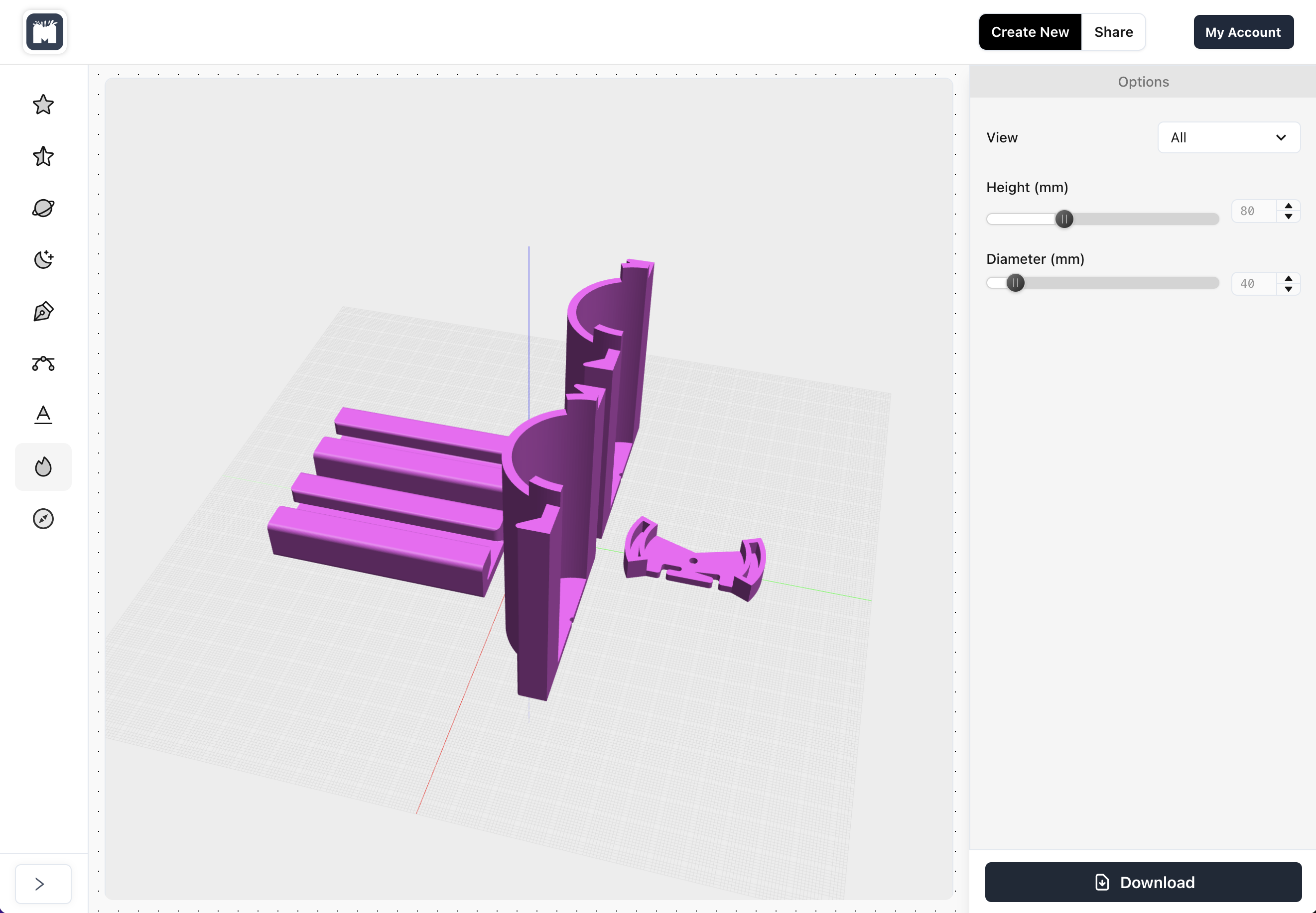 It lets you design custom candle molds for 3D printing, adjusting dimensions and previewing in 3D before downloading.